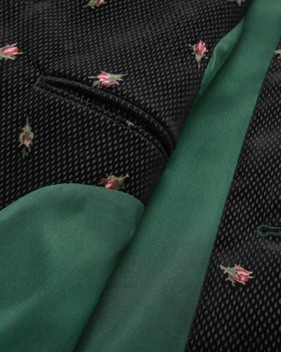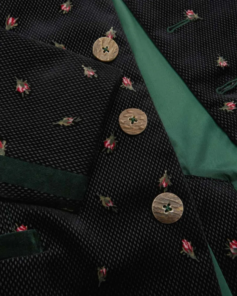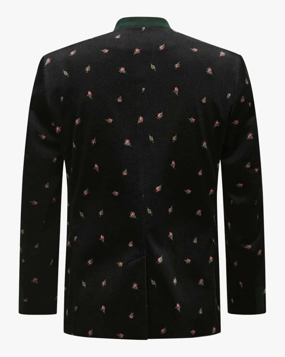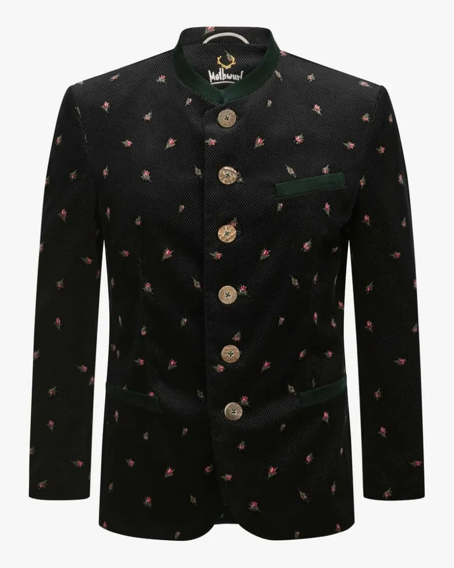 Samt-Trachtenjanker für Herren von Mothwurf in Schwarz, Dunkelgrün und Rosa. DasModell zeichnet sich durch den weichen Baumwollsamt mit fein strukturiertemGittermuster und floralem Print aus, während die traditionelle Silhouette mitdezenten Details den Trachten-Look gekonnt abrundet.