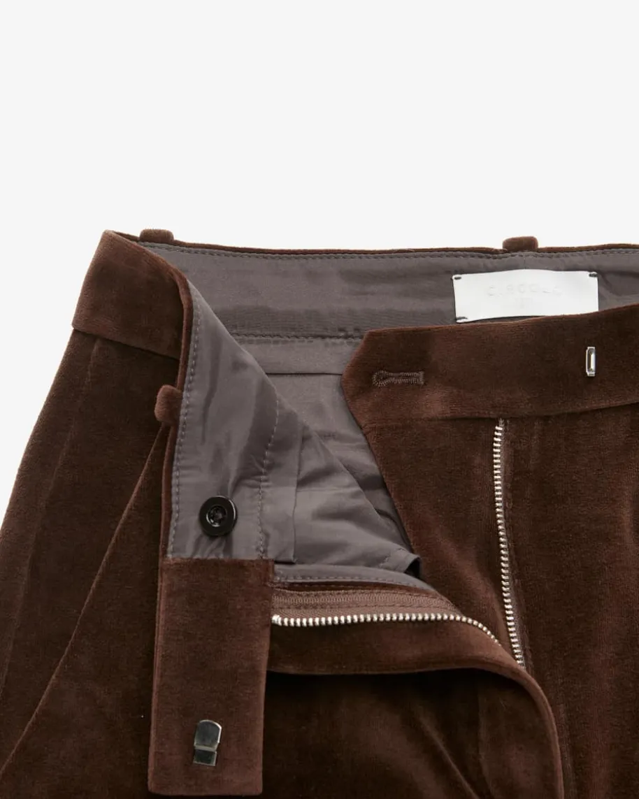 Samthose für Damen von Circolo 1901 in Braun. Das Modell mit weitem Bein undhohem Bund präsentiert sich in weicher Samt-Qualität, welche sowohl haptisch alsauch optisch überzeugt und zusammen mit dem passenden Blazer im femininen Power-Look erstrahlt.