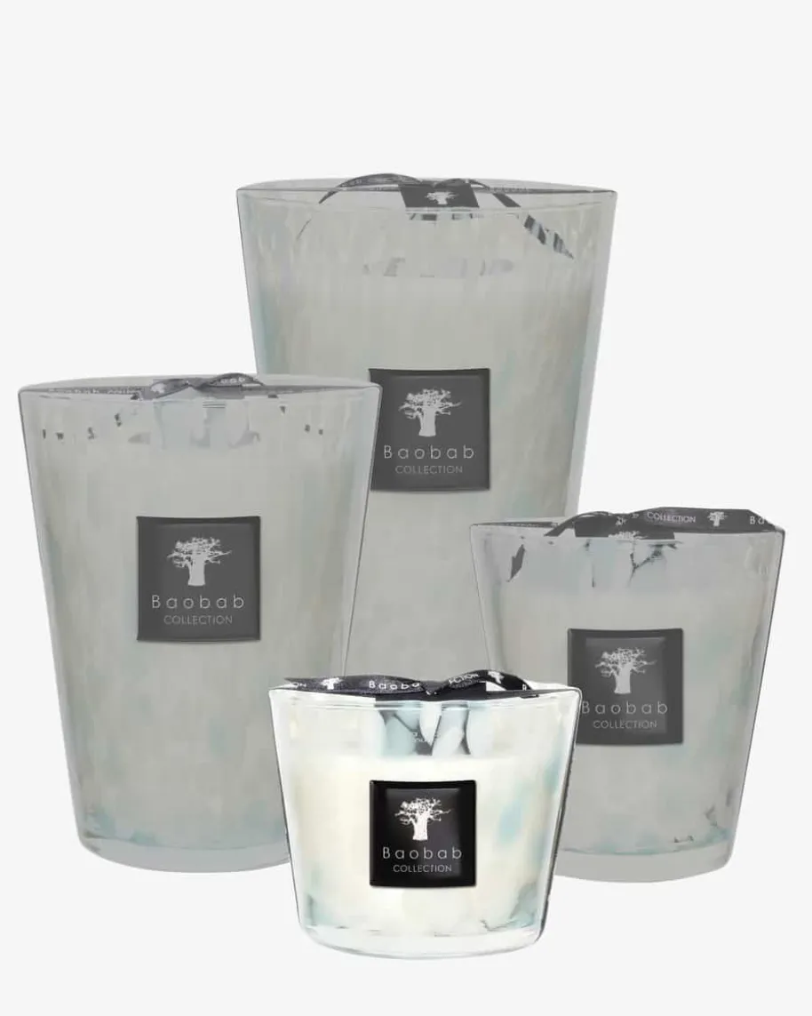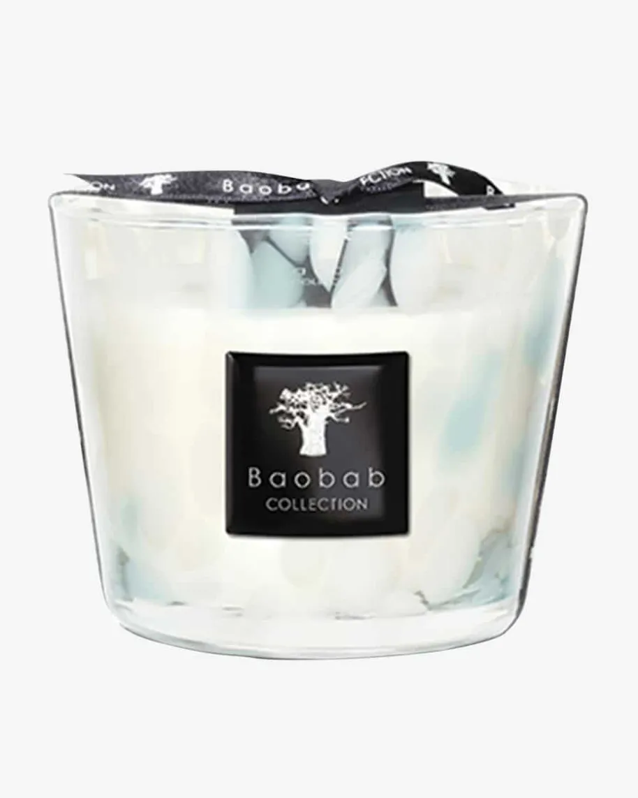 Sapphire Pearls Max 10 Duftkerze von Baobab. In ihrem mundgeblasenen Glas, dasmit azurblauen Akzenten verziert ist, ist die Kerze eine Hommage an dieSchönheit des Edelsteins, nach dem sie benannt wurde. Die Aromen von Salz undMyrte erschaffen einen Duft, der an die Gischt des Meeres erinnert.