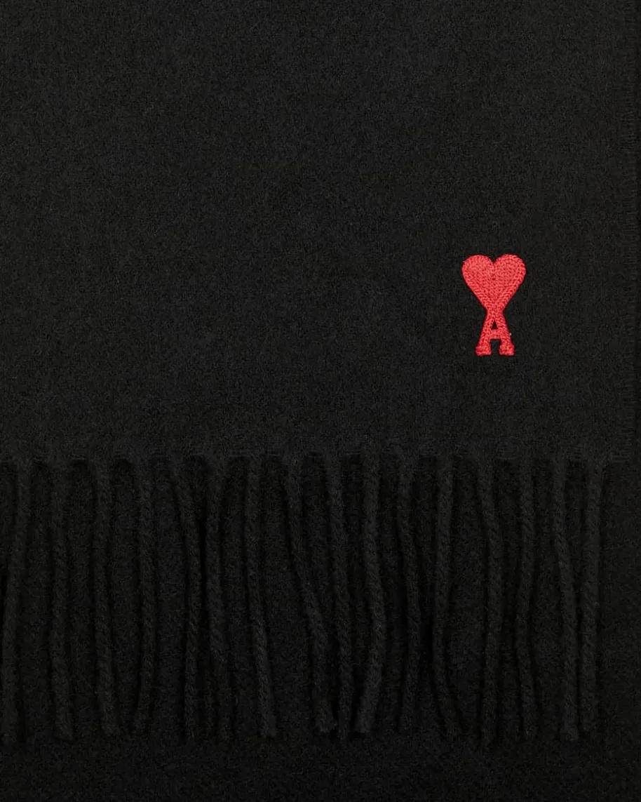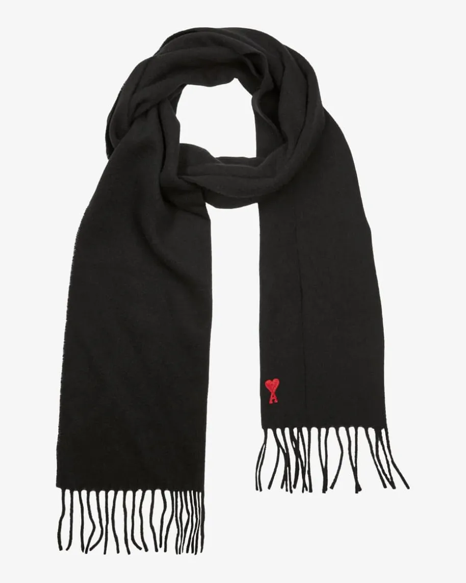 Schal von Ami Paris in Schwarz. Dieses Modell punktet mit weicher Material-Qualität, während die Fransen und die kontrastierende Logo-Stickerei stilvolleAkzente setzen.