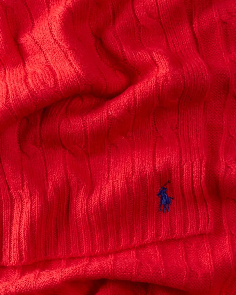 Strickschal für Damen von Polo Ralph Lauren in Rot. Das Modell präsentiert sichdank des hochwertigen Woll-Cashmere-Mix als weicher Favorit mit angenehm-leichtem Griff, während das Zopf-Design sowie Rippstrick-Details dem Gesamtbildeinen klassisch-modernen Charakter verleihen.
