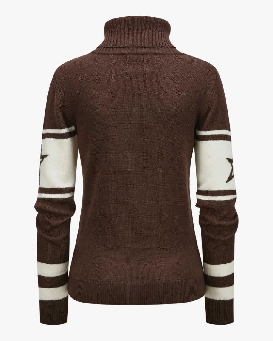 Schild Rollkragenpullover für Damen von Perfect Moment in Braun und Off-White.Fürgeschmackvolle Après-Ski-Looks – Während die hochwertige Merinowolle für einenbesonders weichen Griff sorgt, kreiert das zeitlose Design mit kontrastierenderIntarsie einen stilvollen Winter- oder Pisten-Begleiter.
