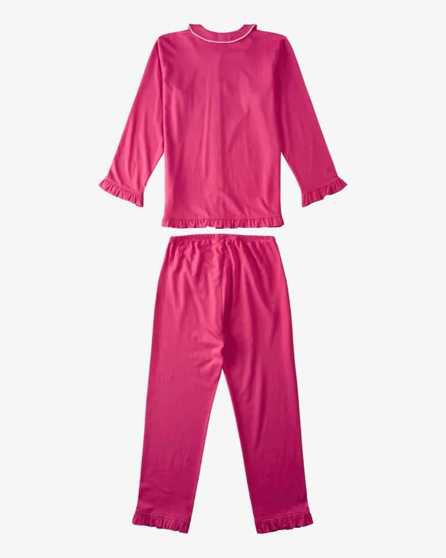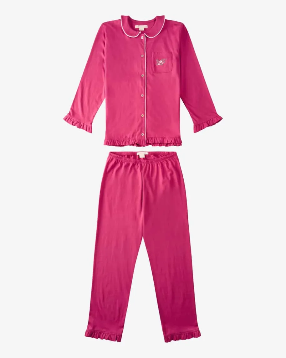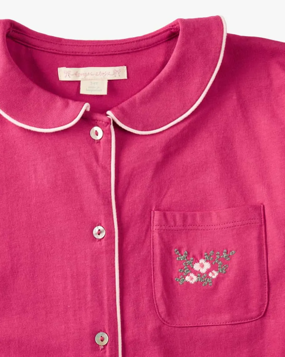 Schlafanzug für Mädchen von Konges Slojd in Pink. Das Modell besticht dankder elastischen Bio-Baumwoll-Qualität mit angenehmen Tragemomenten, währendflorale Stickereien und farblich abgesetzte Paspelierungen ein modischesGesamtbild kreieren.
