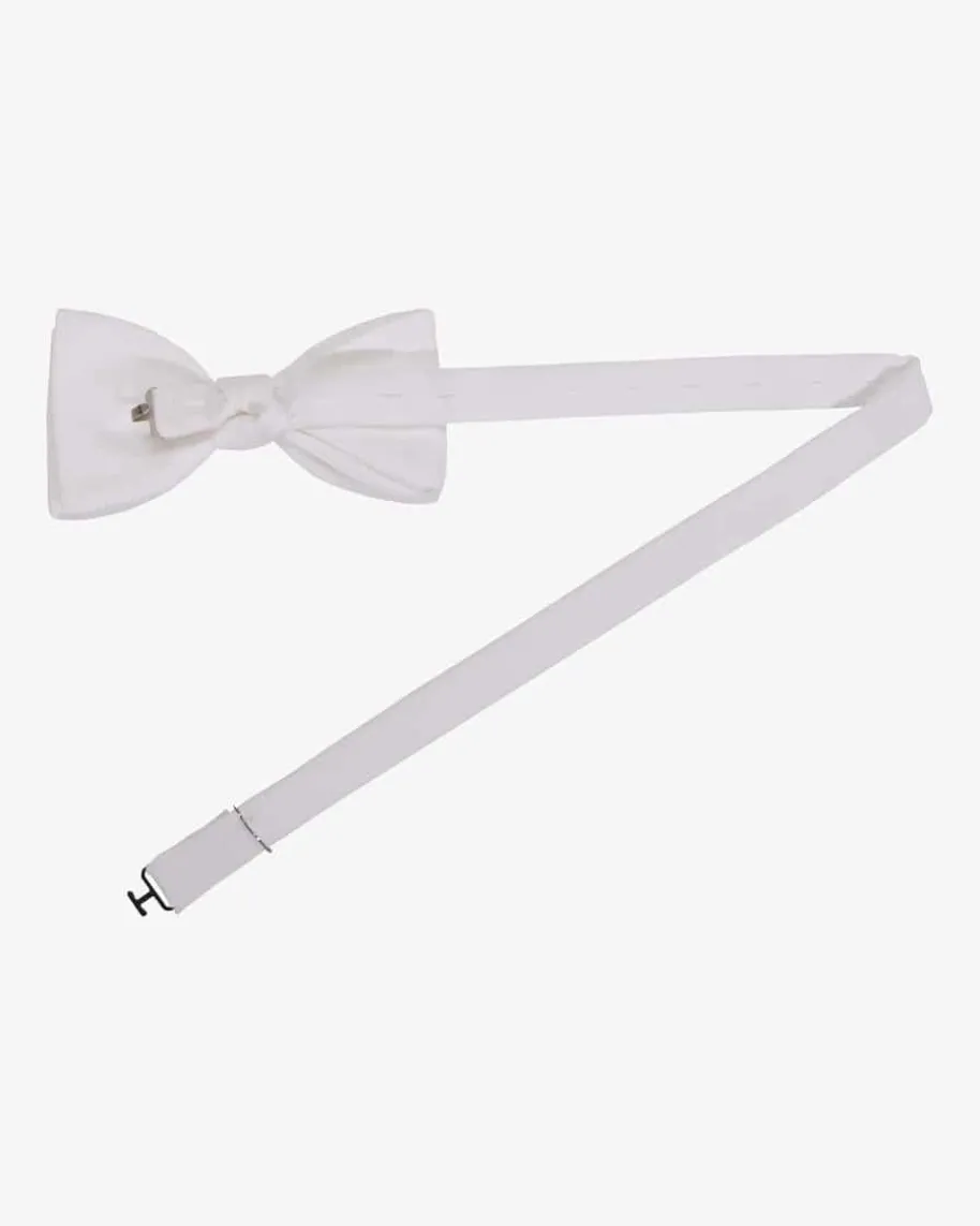 Schleife für Herren von Botthof in Weiß. Die aus Baumwoll-Piqué gefertigte Fliege erweist sich zusammen mit der passenden Frackweste als vornehmer Akzent zum eleganten Frack. Dank dem verstellbaren Riegel kann die Weite individuell angepasst werden.