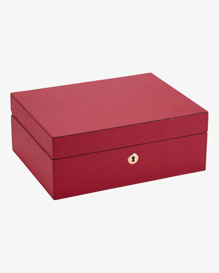 Schmuckkästchen von Giobagnara in Rot. Handmade in Italy – Feinste Leder-Verarbeitungen zeichnen die italienische Luxusmarke aus. Aus hochwertigem Lederund Walnussholz gefertigt, präsentiert sich das Modell als perfekte Aufbewahrungfür Ihren Schmuck.