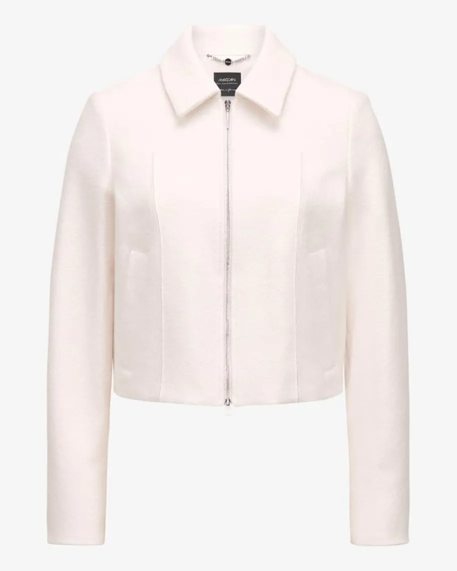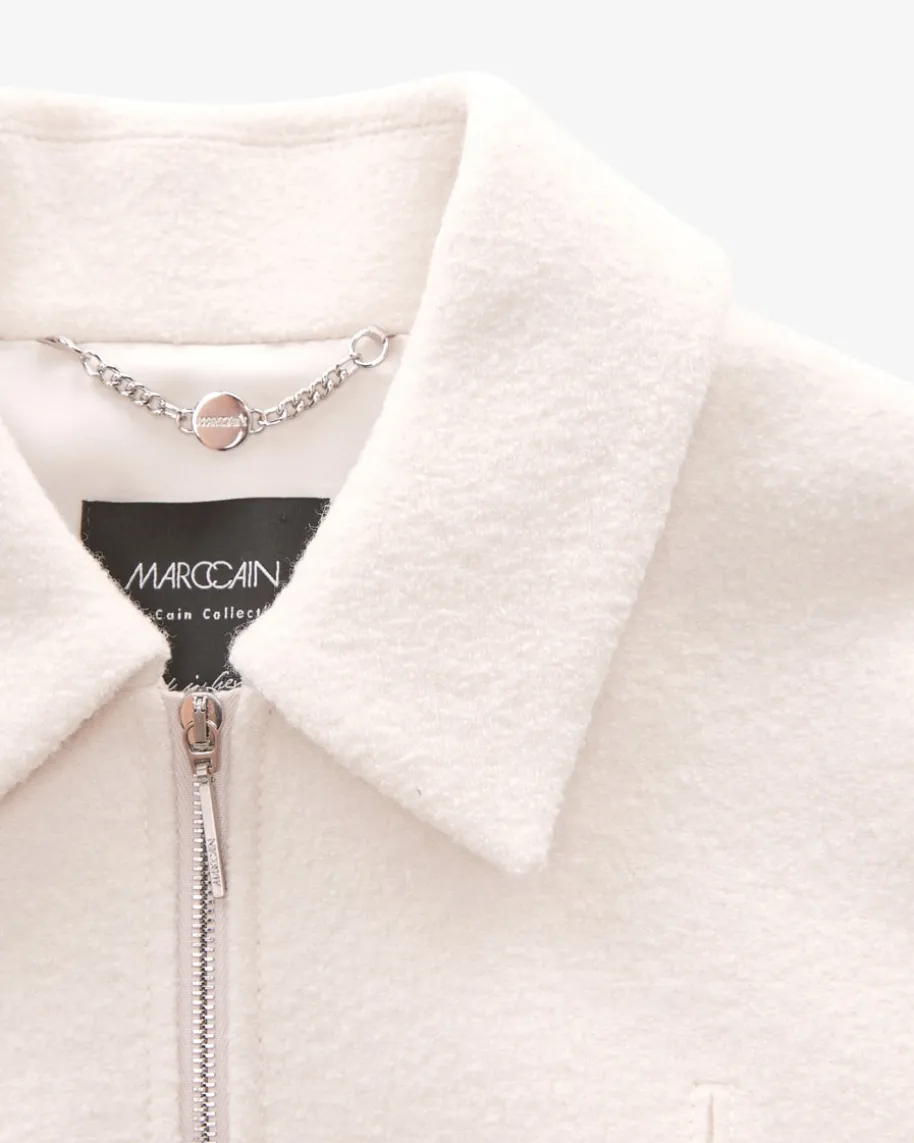 Schurwoll-Blouson für Damen von Marc Cain in Creme. Dank der hochwertigenSchurwoll-Qualität begeistert das Modell als Casual Begleiter, währendklassische Details und die raffinierten Abnäher-Details die feminine Silhouettebetonen.