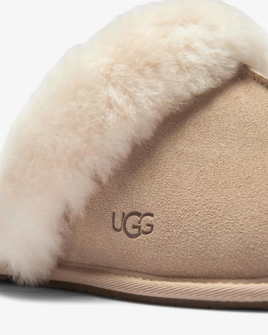 Scuffette Pantoffeln für Damen von UGG in Sand. Das Modell des Kult-Labels überzeugt dank dem weichen Woll-Futter mit einem hohen Wohlfühl-Faktor,während das hochwertige Veloursleder ein zeitloses Design kreiert.