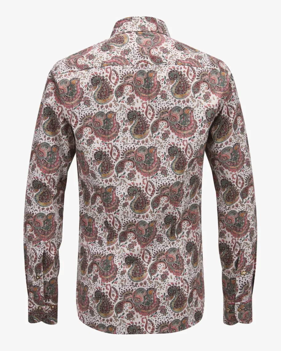 Sebi Trachtenhemd für Herren von Du4 in Bunt und Creme. Ob zum Oktoberfest, demBesuch im Biergarten, einer Hochzeit oder einfach im Alltag – Bei Du4 trifftMode auf Tracht. Während das farbenfrohe Paisley-Muster dem Baumwoll-Modelleinen modernen Charakter verleiht, setzen die Hornknöpfe traditionelle Akzente.