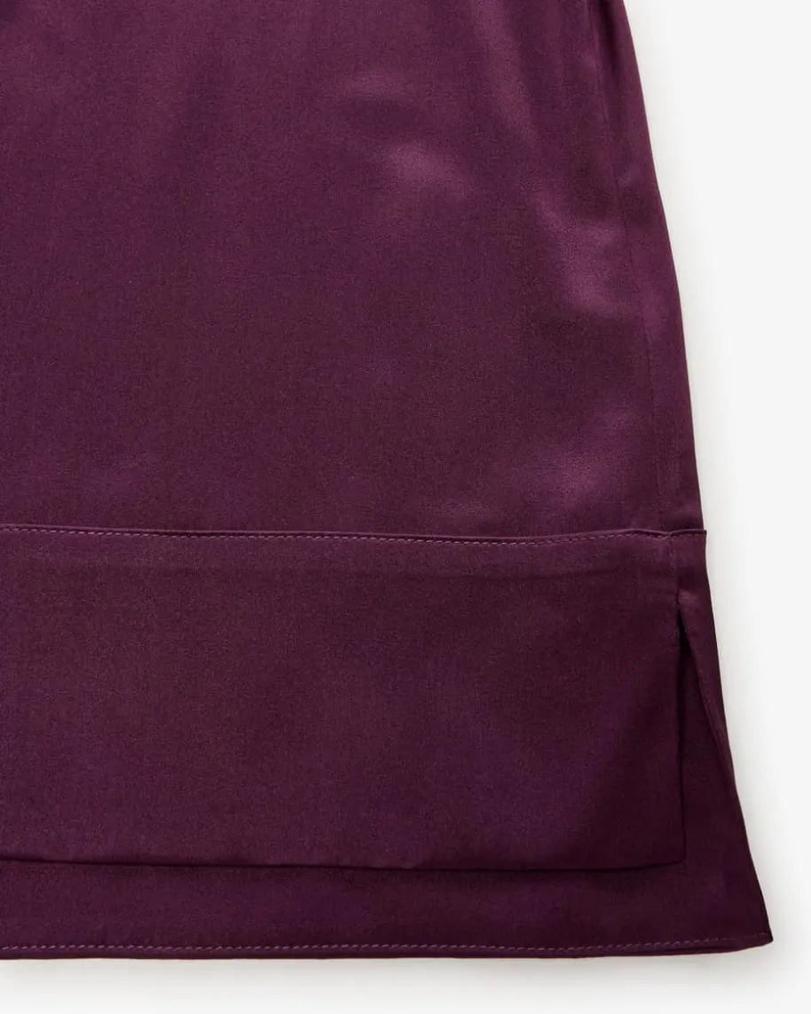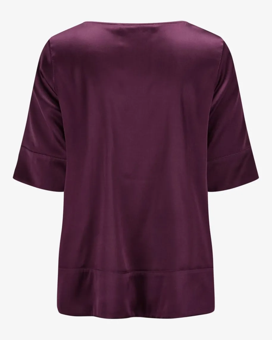 Seiden-Blusenshirt für Damen von (The Mercer) N.Y. in Aubergine. Das weitgeschnittene Modell zeichnet sich besonders durch die elastische Seiden-Qualitätaus, die nicht nur ein edel changierendes Finish verleiht, sondern auch mitangenehmer Haptik punktet.
