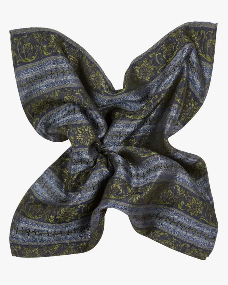 Seiden-Einstecktuch für Herren von Luise Steiner in Dunkelblau, Hellblau undOliv.Das Modell wird durch die feine Musterung gekonnt in Szene gesetztund mit der hochwertigen, changierenden Seiden-Qualität edel untermalt.