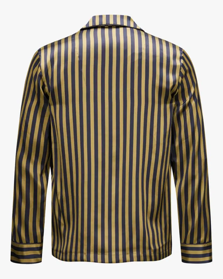 Seiden-Pyjama für Herren von Derek Rose in Navy und Gold. DasFamilienunternehmen steht für hochwertige Nachtwäsche und überzeugt mitexklusivem Komfort sowie perfekter Verarbeitung. Das Loungewear-Set versprichtdank der hochwertigen Seiden-Qualität sowie der legeren Passform erstklassigeWohlfühlmomente, während die modische Hemd-Optik mit stilvollem Streifen-Dessinden letzten Schliff verleiht.