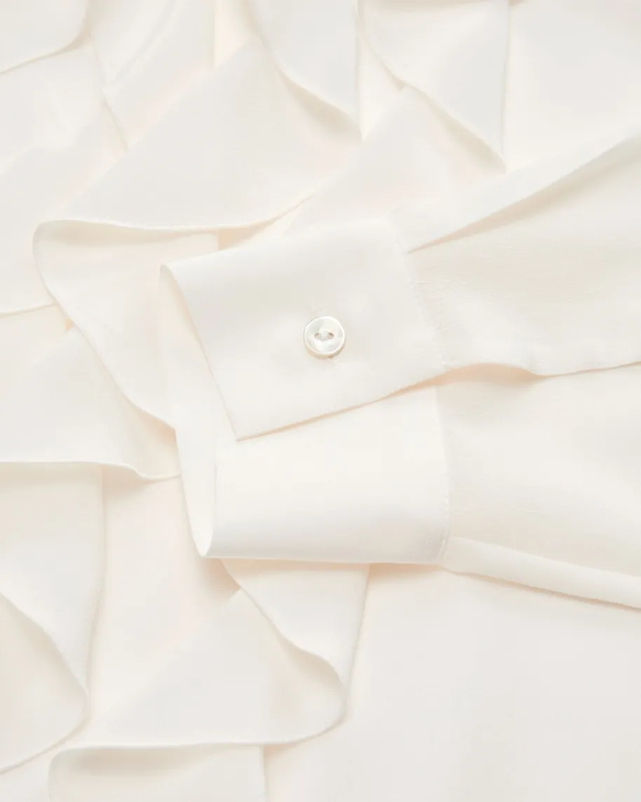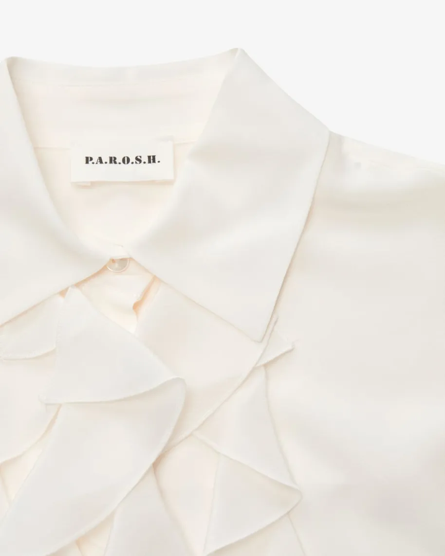 Sewash Seidenbluse für Damen von Parosh in Ivory. Die Marke steht für verspielteDesigns mit Vintage-Flair – farbenfrohe Prints, Glitzer und Retro-Vibes made inItaly. Das Modell überzeugt in fließender Seiden-Qualität und romantischerRüschen-Aufmachung, während die angenehme Haptik das Gesamtbild gekonnt ergänzt.Ein zeitloser Begleiter der sich vielseitig stylen lässt.