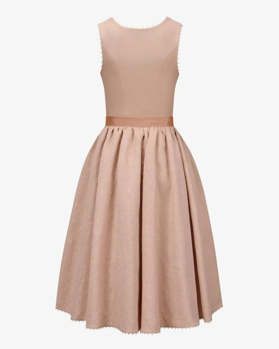 Sezann Midi-Dirndl mit Schürze für Damen von Kinga Mathe in Apricot. Mit Liebezum Detail entwirft das deutsche Label aufwendige Trachten-Kreationen mit demgewissen Etwas und überzeugt mit erlesener Stoffauswahl sowie kreative Designs.Das Modell überzeugt mit strukturiertem Mieder und feinen Zierborten, währendder Unterrock mit Volants-Saum eine feminine Passform verleiht. Die dezentchangierende Schürze aus Seiden-Mix komplettiert den Jacquard-Rock harmonisch.