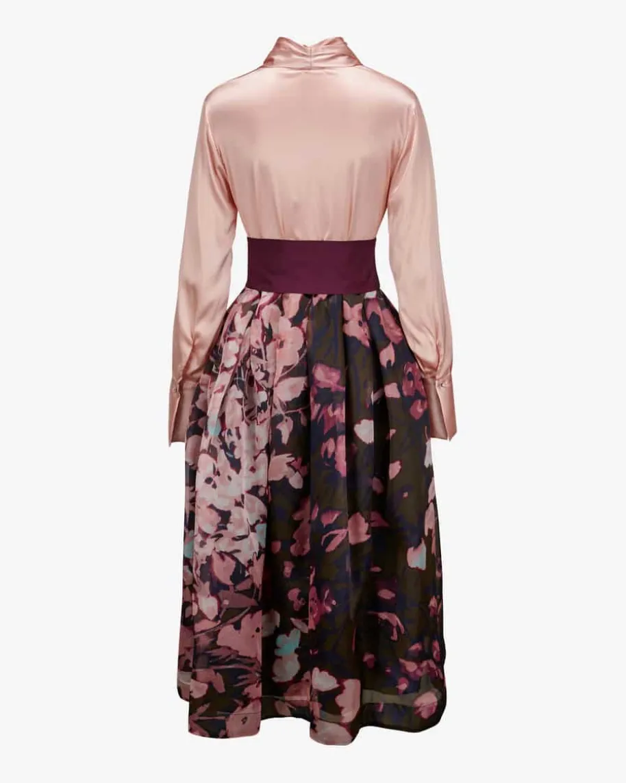Sharetta Kleid für Damen von Sara Roka in Rosa, Bordeaux und Oliv. FeminineDesigns mit dem gewissen Etwas. Der Ursprung der Kollektionen findet sich imklassischen Herren-Hemd wieder, von dem die typischen Blusenkleider inspiriertsind. Auch dieses Modell präsentiert sich in raffinierter Material-Kombinationmit changierendem Blusen-Oberteil. Der floral gemusterte Rock und das abnehmbareTaillenband zaubern eine feminine Silhouette und runden den Look in Wickel-Optikgekonnt ab.