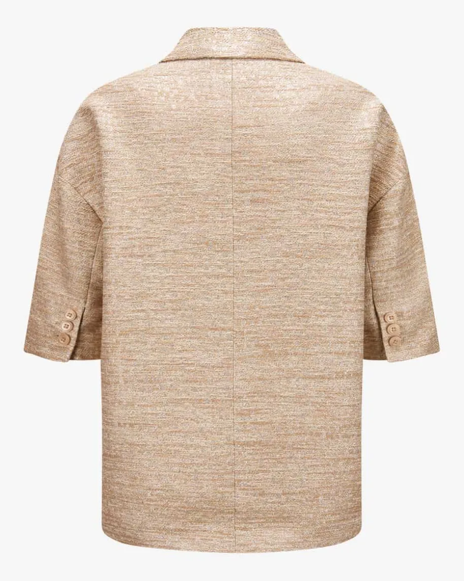 Shiny Coolness Blazer für Damen von Dorothee Schumacher in Gold. Das Modellüberzeugt mit weiter Passform, die legere Akzente setzt, während die glitzerndeAufmachung einen modischen Look kreiert. Die verkürzten Ärmel runden dasGesamtbild harmonisch ab.