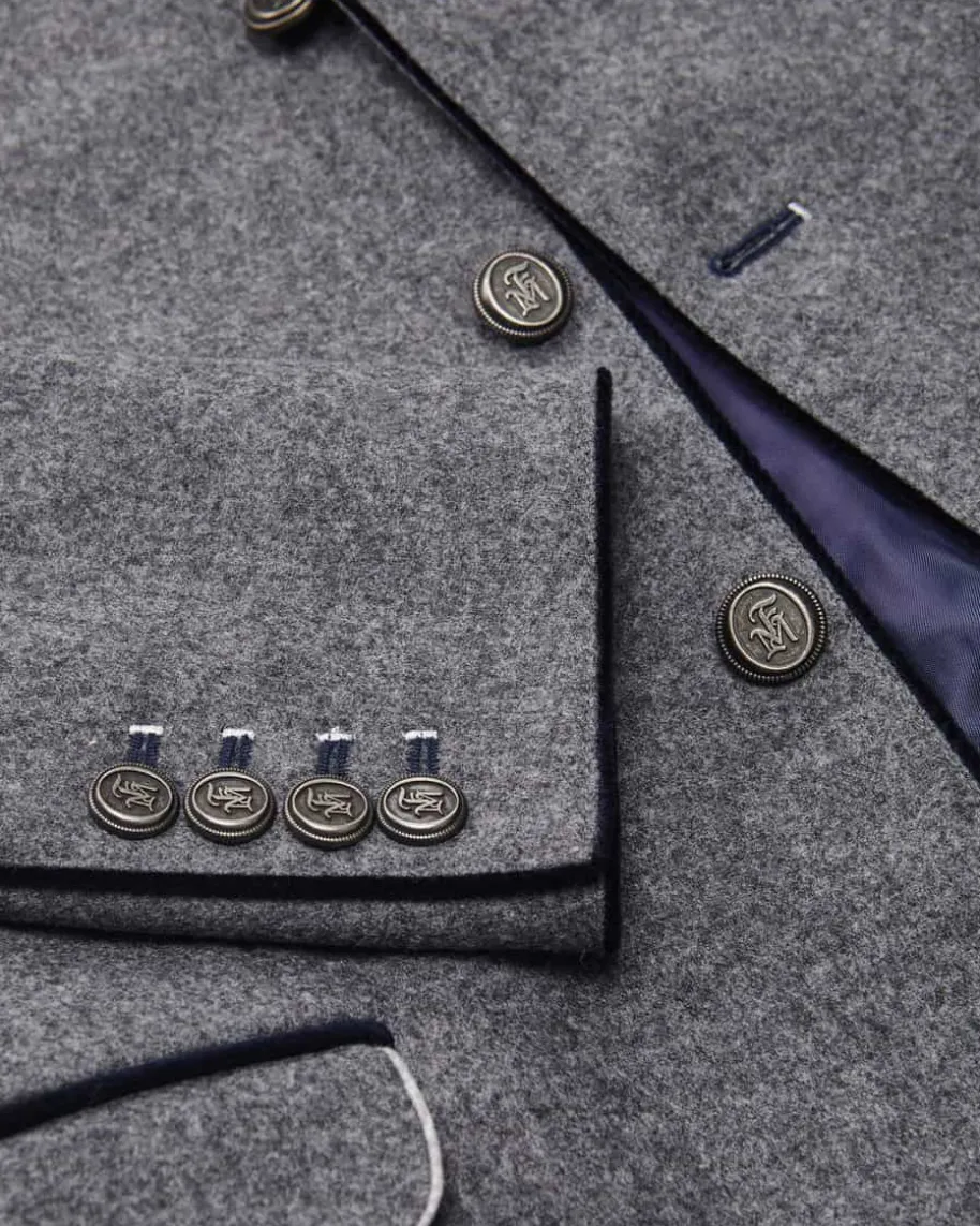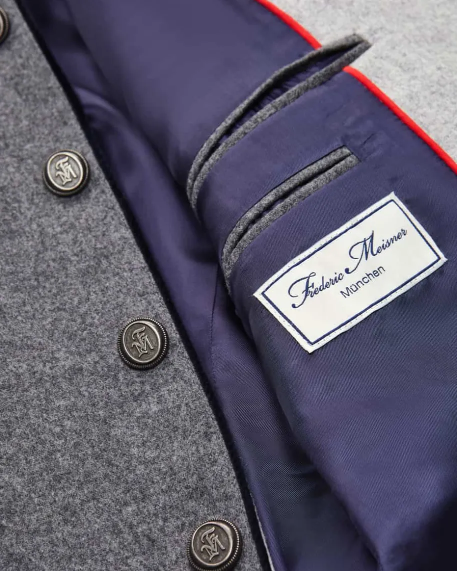 Silas Trachten-Janker aus Merino-Schurwolle für Herren von Frederic Meisner inGrau und Nachtblau. Das Modell besticht dank der hochwertigen und zugleichleichten Merino-Schurwolle in traditioneller Aufmachung. Edle Metallknöpfe mitInitialen des Labels sowie Kontrast-Paspeln aus changierendem Samt runden dasmaskuline Trachten-Outfit perfekt ab.