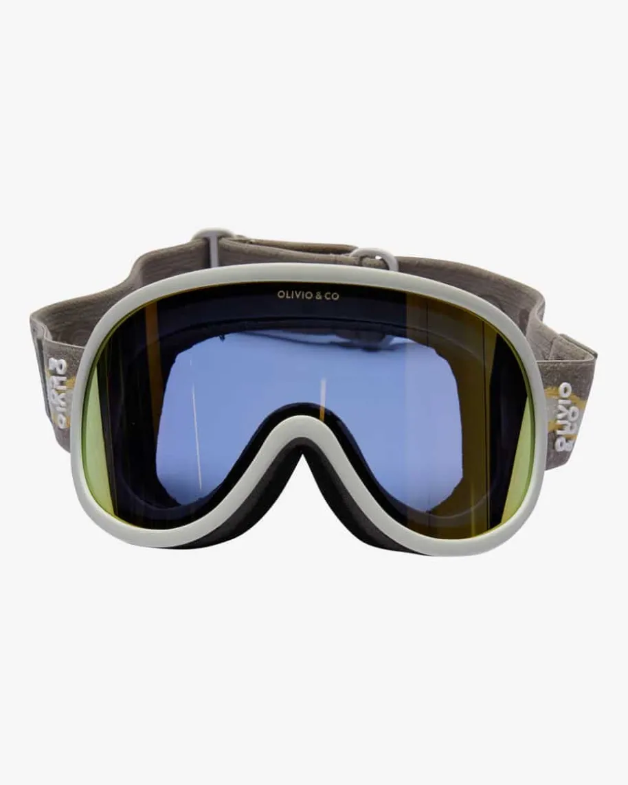 Skibrille für Kinder von OLIVIO&CO in Hellgrau, Dunkelgrau und Gold. Dieangesagte sportive Form macht die Skibrille zu einem stilvollen Accessoire fürsonnige Wintertage. Zugleich überzeugt das Modell durch das verstellbareGummiband und die Anti-Fog Beschichtung.