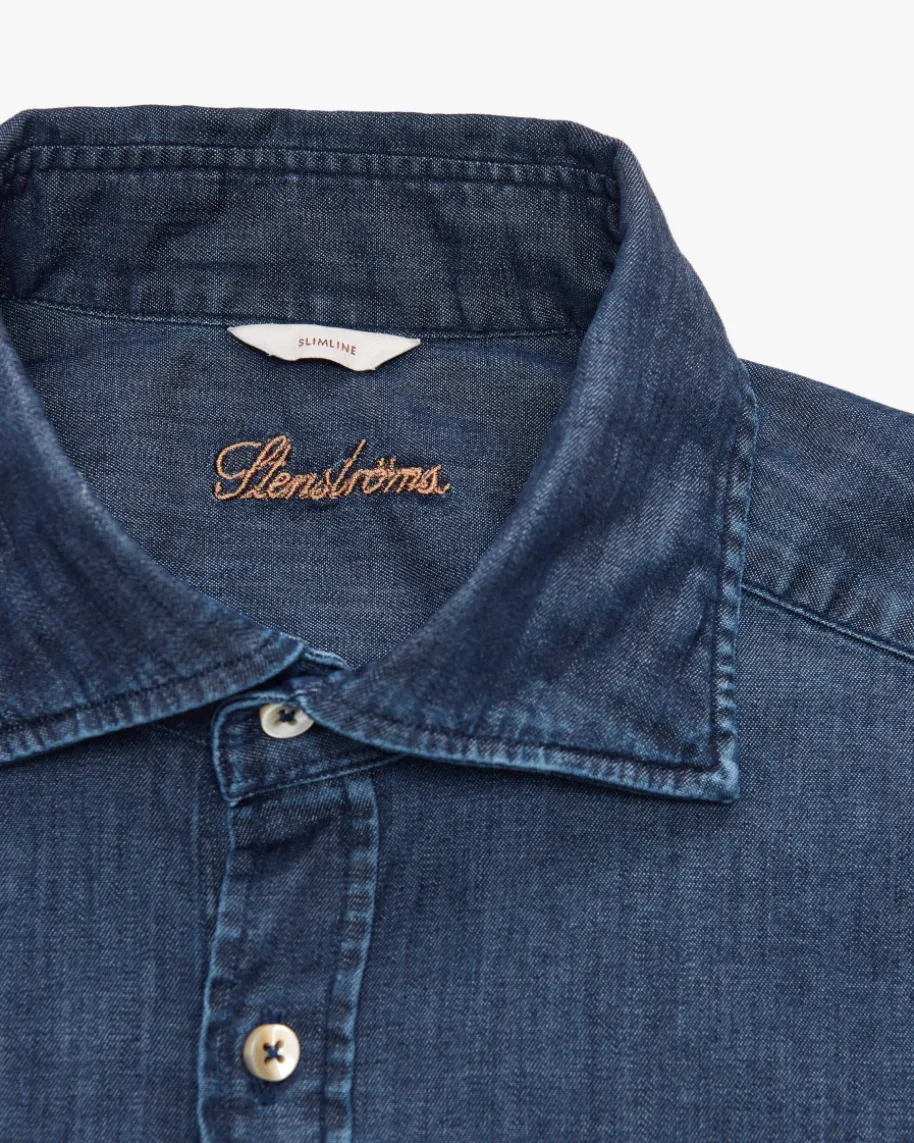 Jeanshemd für Herren von Stenströms in Dunkelblau. Das klassisch gehalteneModellbesticht mit der Light Denim-Aufmachung, wodurch dem Hemd ein legerer Charakterverliehen wird. Changierende Perlmutt-Knöpfe runden den Look zudem harmonischab.