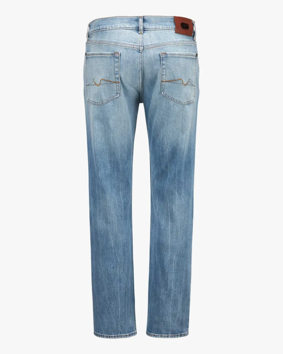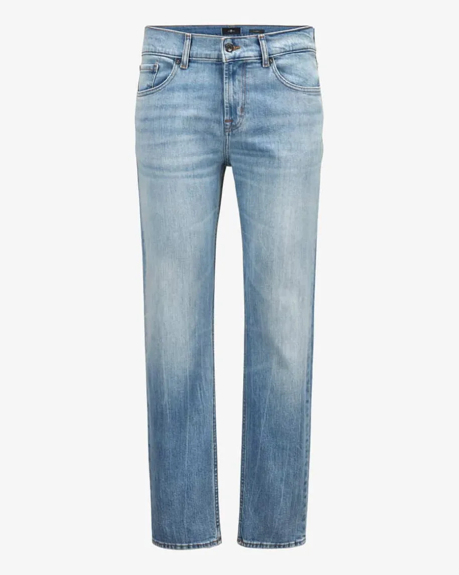 Slimmy Jeans für Herren von 7 For All Mankind in Hellblau. Das Modellpräsentiert sich mit klassischem Slim Fit sowie zeitlosen Details und überzeugtdank angenehm elastischem Baumwoll-Mix in gleichmäßiger Waschung als perfekteJeans für Casual Looks.
