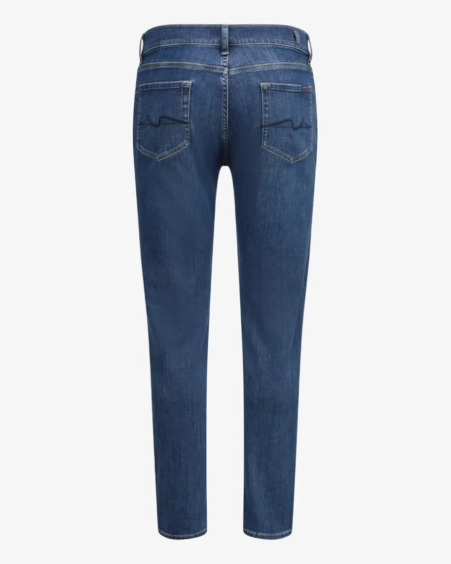 Slimmy Tapered Jeans für Herren von 7 For All Mankind in Blau. Die dezenteWaschung sowie klassische Details schaffen einen vielseitigen Favoriten fürjeden Tag, während die elastische Baumwoll-Verarbeitung einen besonders hohenTragekomfort verspricht.