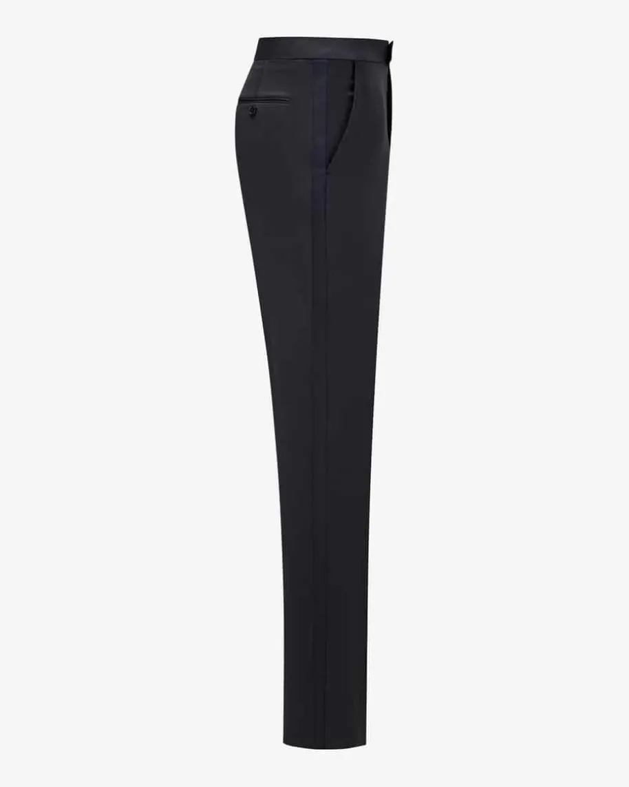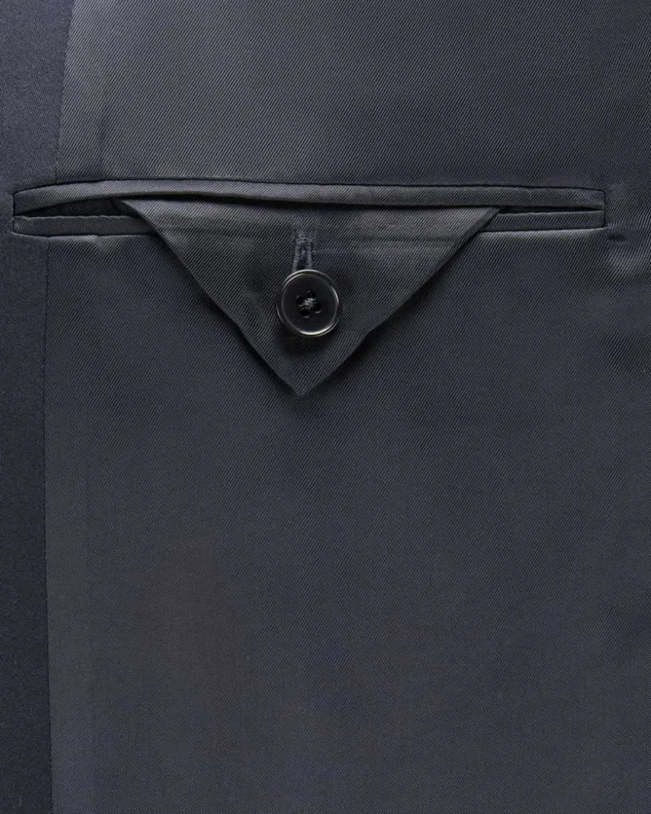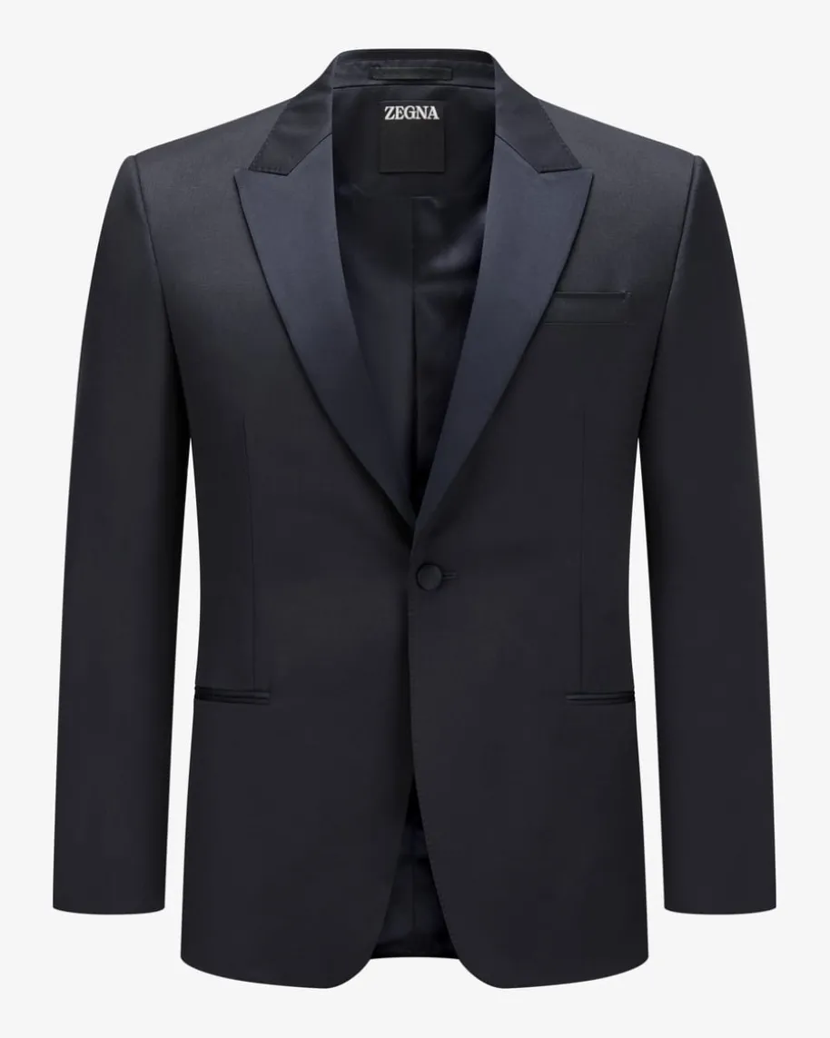 Smoking Tailored für Herren von Zegna in Nachtblau. Langjährige Erfahrung imDesign und der Schneiderkunst lässt Zegna perfekt sitzende Kleidung kreieren.Der Luxus Herrenausstatter präsentiert mit diesem taillierten Modell aushochwertiger Wolle einen absoluten Design-Klassiker. Die samtig-weichen,seitlichen Galon-Streifen an der Hose komplettieren den edlen Look gekonnt.