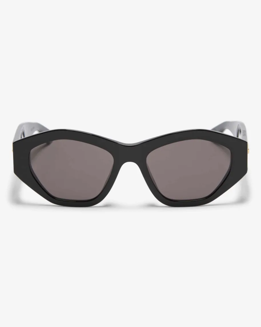 Sonnenbrille für Damen von Bottega Veneta Eyewear in Schwarz. Dank sechseckigerForm avanciert das Modell mit breitem Rahmen in Hochglanz-Optik zum modischenBegleiter an sonnigen Tagen. Die goldfarbenen Elemente fügen dabei einenlabeltypischen Akzent hinzu.