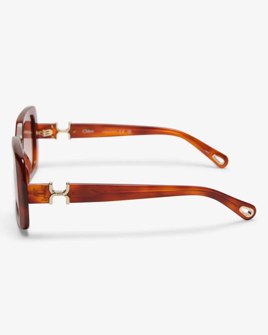 Sonnenbrille für Damen von Chloé Eyewear in Terrakotta und Rosa. Dank dereckigen Gläser mit abgerundeten Kanten sowie der Havana-Aufmachung überzeugt dasModell als modisches Highlight für sonnige Tage. Die goldfarbenen Metall-Detailsverleihen dabei den letzten Schliff.