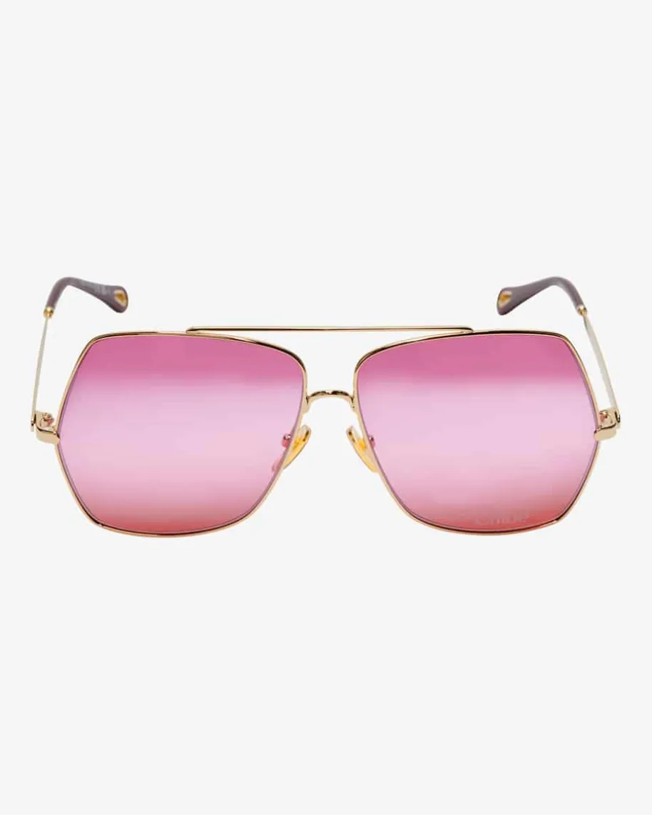 Sonnenbrille für Damen von Chloé Eyewear in Gold, Rosa und Dunkelrosa. Mitdiesem Modell präsentiert das Label einen modisch-eleganten Favoriten fürsonnige Tage, während Logo-Details das extravagante Gesamtbild gekonnt abrunden.