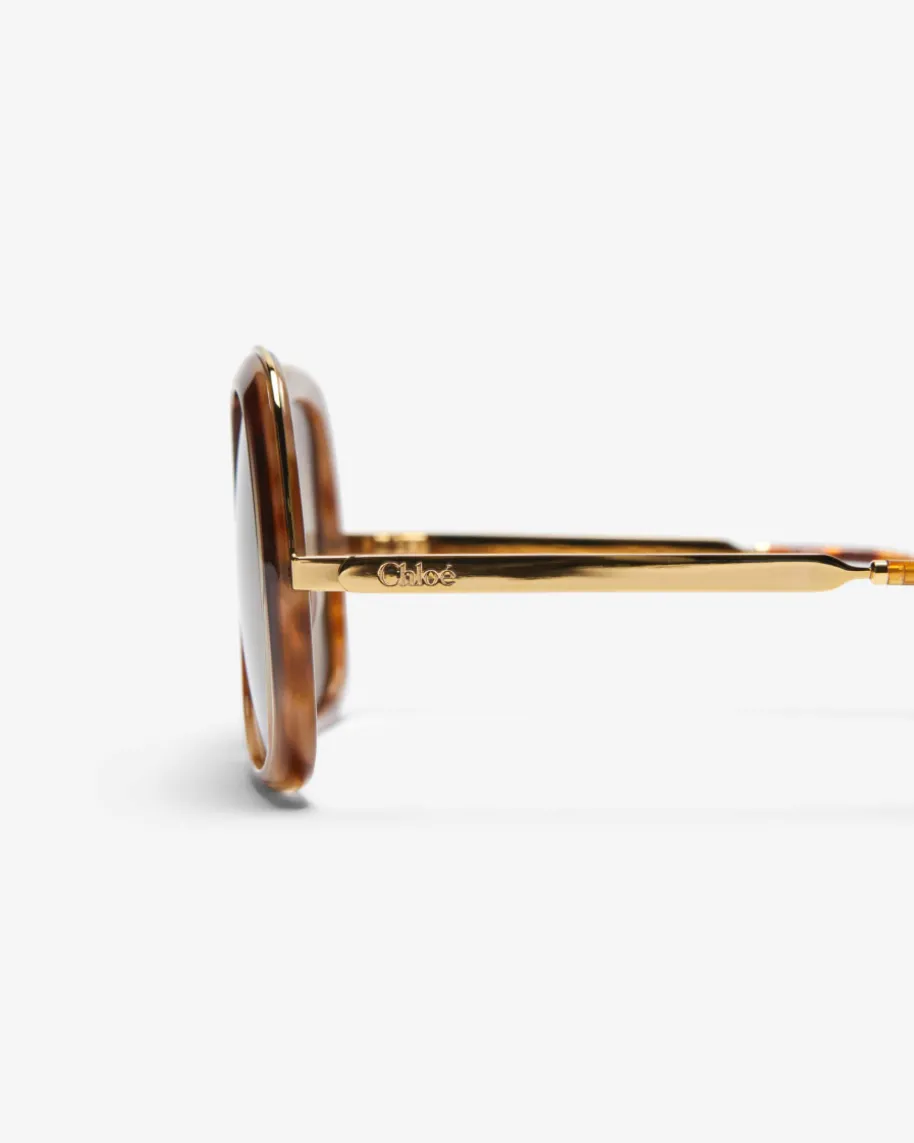 Sonnenbrille für Damen von Chloé Eyewear in Braun und Gold. Dank der großen Formmit eckigen, abgerundeten Gläsern und dezentem Farbverlauf sowie der Havana-Aufmachung überzeugt das Modell als modisches Highlight für sonnige Tage. Diegoldfarbenen Metall-Elemente verleihen dabei den letzten Schliff.
