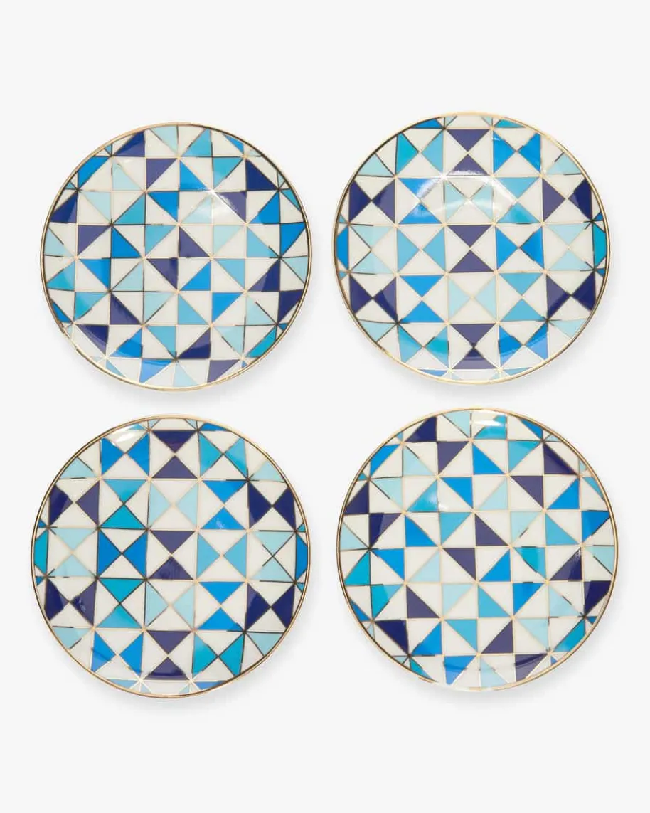 Sorrento Porzellan-Untersetzer Set von Jonathan Adler in Blau, Weiß und Gold.Der New Yorker Star-Keramiker präsentiert mit seinen Kreationen einzigartigeInterior-Designs. Auch dieses Set aus 4 dekorativen Untersetzern mit grafischemRautenmuster erweist sich als stilsicheres Must-Have, das in keinem Haushaltfehlen darf.