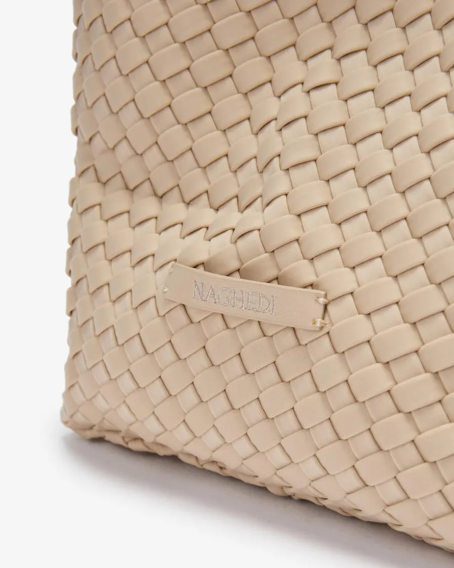 St. Barths Large Tote Handtasche für Damen von Naghedi in Sand. Dieses textileModell präsentiert sich in changierender Optik und edler Flecht-Aufmachung,während viel Stauraum geboten wird. Die separate Clutch ist mit einemReißverschluss versehen und bietet Platz für Ihre Kosmetikartikel oder andereKleinigkeiten.