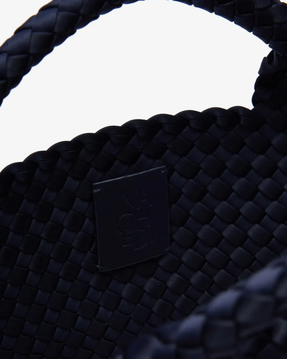 St. Barths Medium Tote Handtasche für Damen von Naghedi in Navy. Dieses textileModell präsentiert sich in changierender Optik und edler Flecht-Aufmachung,während viel Stauraum geboten wird. Die separate Clutch ist mit einemReißverschluss versehen und bietet Platz für Ihre Kosmetikartikel oder andereKleinigkeiten.