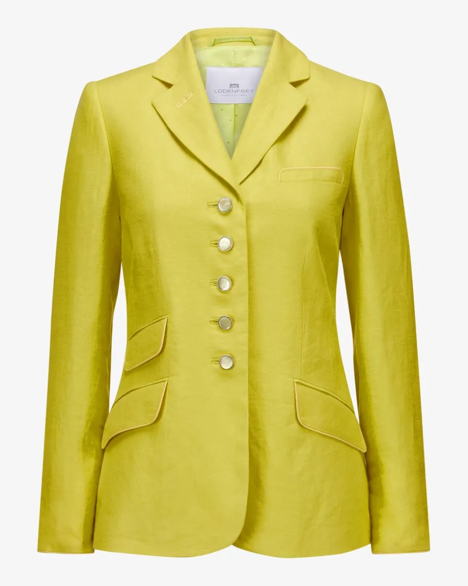 St. Gallen Leinen-Trachtenblazer für Damen von LODENFREY München 1842 in Neon-Gelb. Das taillierte Modell überzeugt dank fein strukturierter Leinen-Qualitätsowohl haptisch als auch optisch, während die changierenden Knöpfe stilvolleAkzente setzen und so einen femininen Begleiter für moderne Trachten-Lookskreieren.