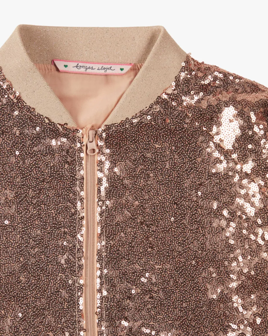 Starla Paillettenjacke für Mädchen von Konges Slojd in Roségold und Sand.Dänisches Design für Babys & Kinder – nachhaltig, stylisch, durchdacht. Auchdieses einzigartige Modell begeistert mit changierenden Pailletten und süßemSchleifen-Motiv, während sportive Details das Design in Blouson-Optik gekonntabrunden.