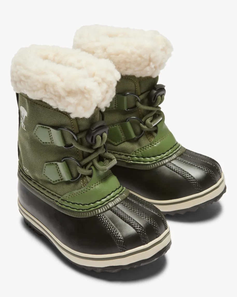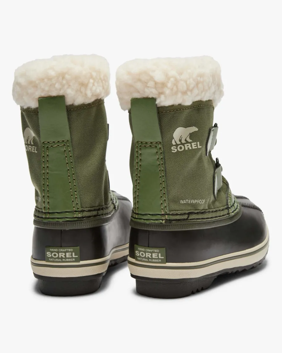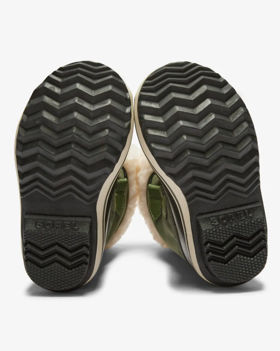 Stiefel für Kinder von Sorel in Grün, Schwarz und Creme. Mit diesem Modell hatdas Label einen funktionalen Begleiter für Ihr Kind geschaffen. Dank deswasserdichten Materials sowie der wärmenden Textil-Innenseite erweist sich dasModell als ideales Schuhwerk an verregneten und kalten Tagen. Für ein einfachesAn- und Ausziehen sorgt zudem die praktische Tunnelzug-Schnürung.
