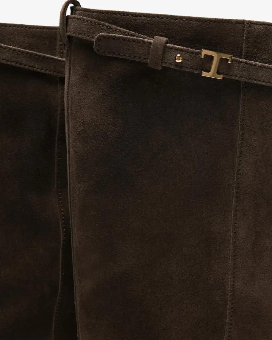 Stiefel für Damen von Tod’s in Dunkelbraun. Seit über 100 Jahren steht das Labelfür exklusiven Stil made in Italy. Hochwertig verarbeitet, werden Tod’s Schuhezu eleganten Begleitern für jede Gelegenheit. Das Modell begeistert mit weichemVeloursleder, das für angenehmen Tragekomfort sorgt. Der hohe Schaft mitdekorativem Riegel wird mit labeltypischen Logo-Details abgerundet.