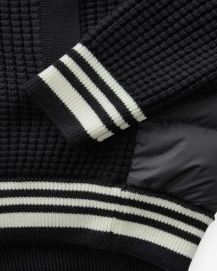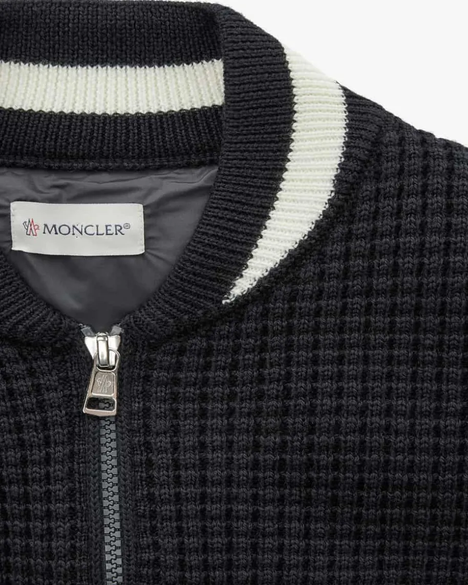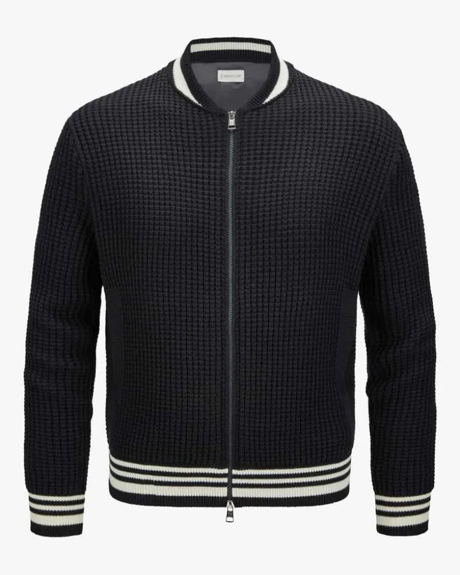 Strick-Blouson für Herren von Moncler in Navy. Das Modell präsentiert sich dankder Blouson-Aufmachung als sportiver Begleiter, der durch die Strick-Verarbeitung ein modernes Finish erhält. Zugleich verspricht die hochwertigeDaunen-Feder-Füllung Schutz vor Kälte.