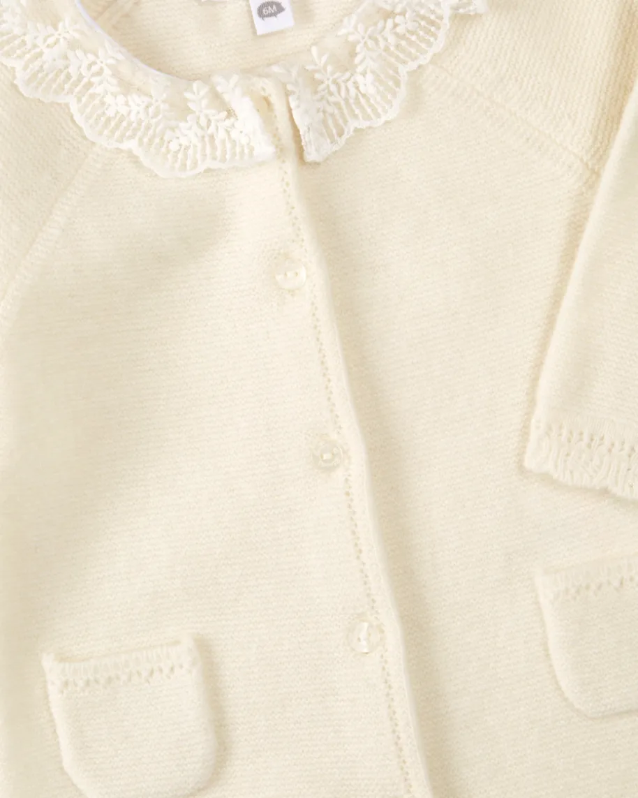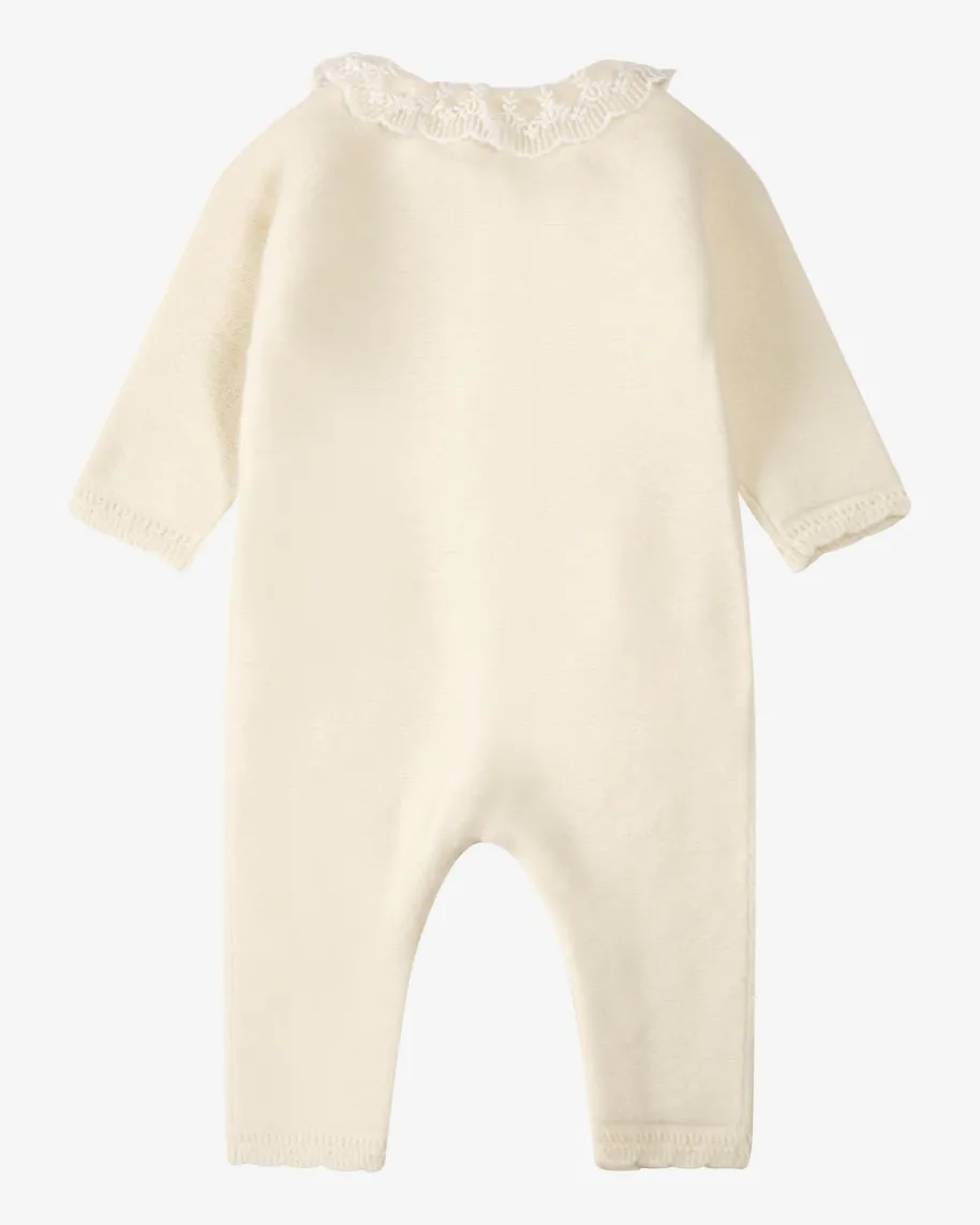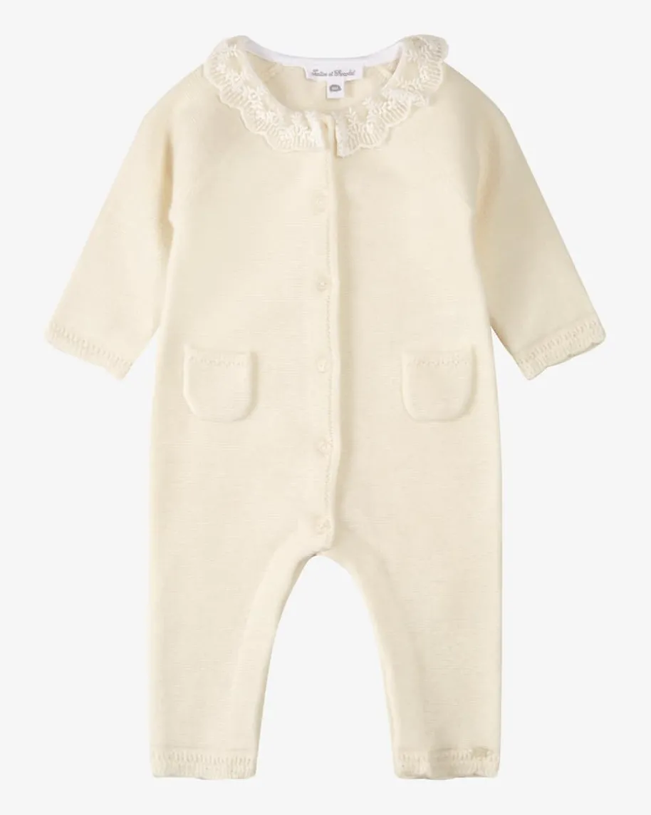 Strick-Overall für Babys von Tartine et Chocolat in Ecru. Dank weichem Wolle-Cashmere-Mix sowie dem feinen Spitzenkragen besticht das Modell als niedlicherFavorit, während geknöpfte Partien einen unkomplizierten Klamottenwechselgarantieren.