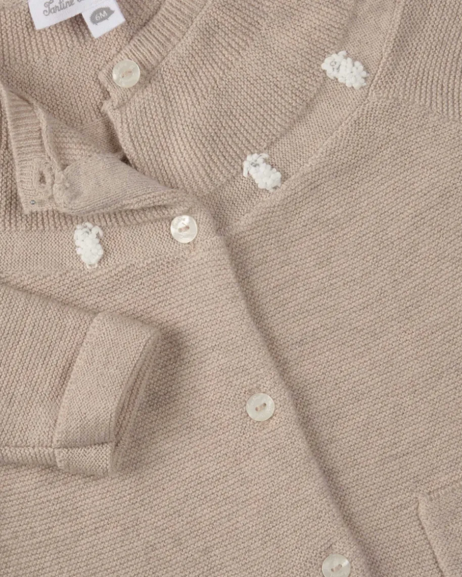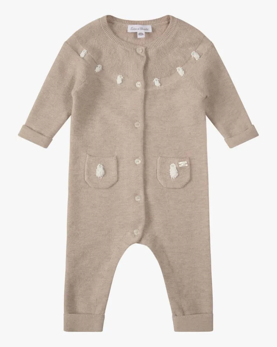 Strick-Overall für Babys von Tartine et Chocolat in Beige und Weiß. Dank weichemBaumwoll-Wolle-Cashmere-Mix sowie den süßen Schaf-Stickereien besticht dasStrick-Modell als niedlicher Favorit, während geknöpfte Partien einenunkomplizierten Klamottenwechsel garantieren.
