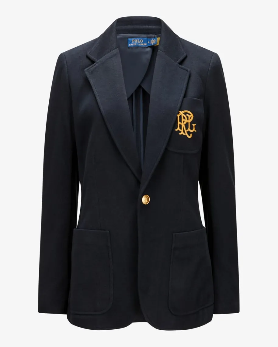Strickblazer für Damen von Polo Ralph Lauren in Navy. Das Modell aus angenehmemBaumwoll-Mix präsentiert sich dank goldfarbener Logo-Stickerei sowie denWappenknöpfen in stilvoller Aufmachung, welche durch die Strick-Verarbeitungeine legere Note erhält.