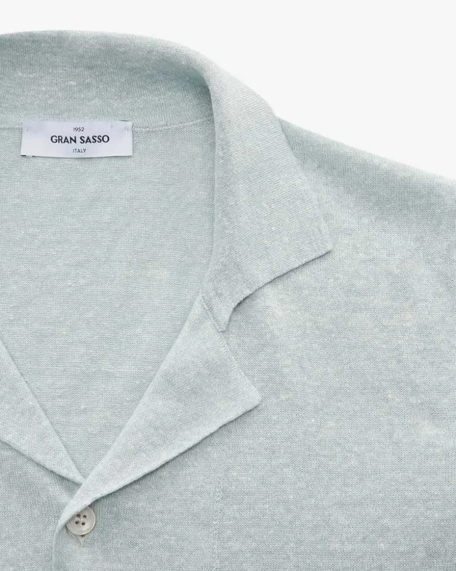Strickhemd für Herren von Gran Sasso in Türkis. Das Kurzarm-Modell zeichnet sichdurch die hochwertige Leinen-Baumwoll-Verarbeitung aus, während die melierteAufmachung den angesagten Bowling-Look harmonisch ergänzt.