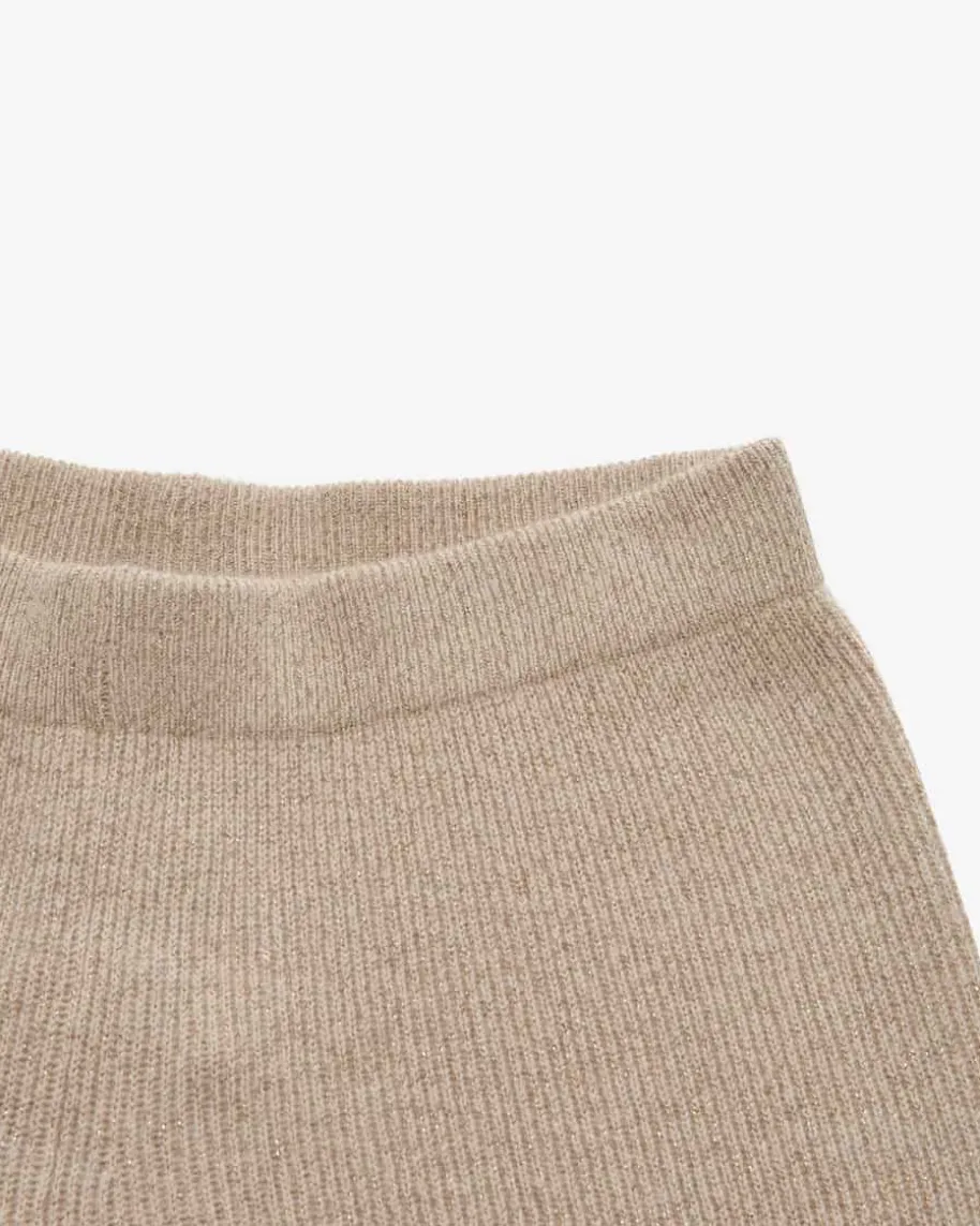 Strickhose für Damen von Fabiana Filippi in Sand und Gold. Das Modell aus edlemMaterial-Mix überzeugt mit weicher Haptik und weiter Passform, während dieGlitzer-Aufmachung besondere Akzente setzt.