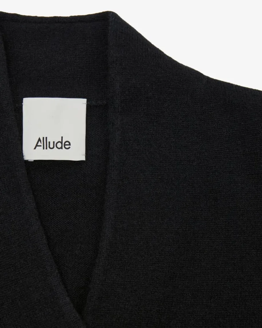 Strickjacke für Damen von Allude in Schwarz. Das Münchner Label wurde 1993 vonAndrea Karg gegründet und ist bekannt für luxuriöse Strickmode aus edlemCashmere. Auch dieses Modell überzeugt mit weichem Schurwolle-Cashmere-Mix infeiner Strick-Qualität, während die tonalen Knöpfe den cleanen Look gekonntergänze und einen femininen Begleiter kreieren.