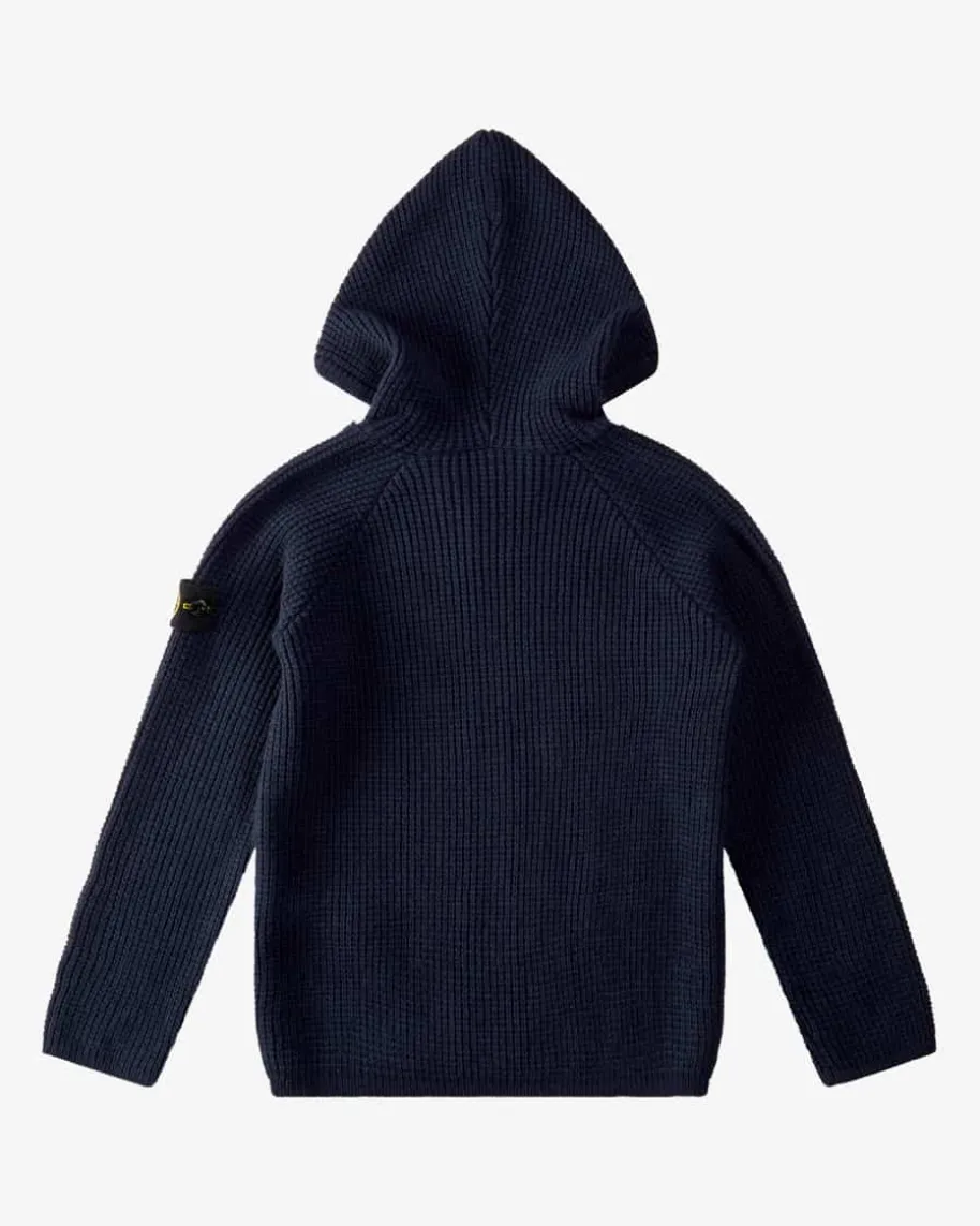 Strickjacke für Jungen von Stone Island Junior in Navy. Die Designermarkeerlangte nach ihrer Gründung 1982 schnell Kultstatus und zählt inzwischen zu denabsoluten Trendmarken. Das Modell überzeugt mit angenehmem Schurwoll-Cashmere-Mix in strukturierter Waffelstrick-Optik, während die charakteristische Logo-Plakette den sportiven Look gekonnt abrundet.