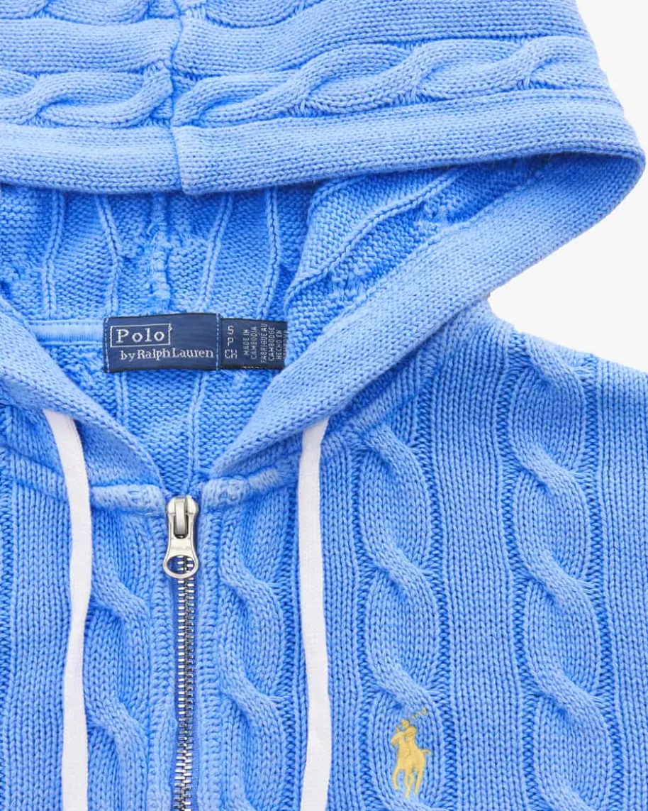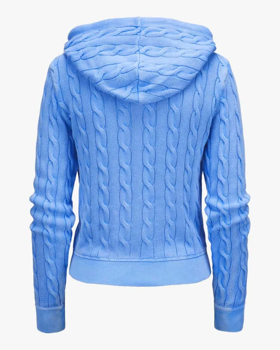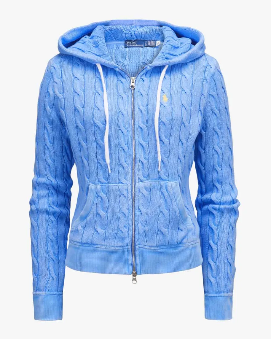 Strickjacke für Damen von Polo Ralph Lauren in Blau. Das Modell präsentiert sichdank des modernen Zopfstrick-Musters in modischer Aufmachung, während klassischeDetails sowie die labeltypische Logo-Stickerei das Gesamtbild harmonischabrunden.