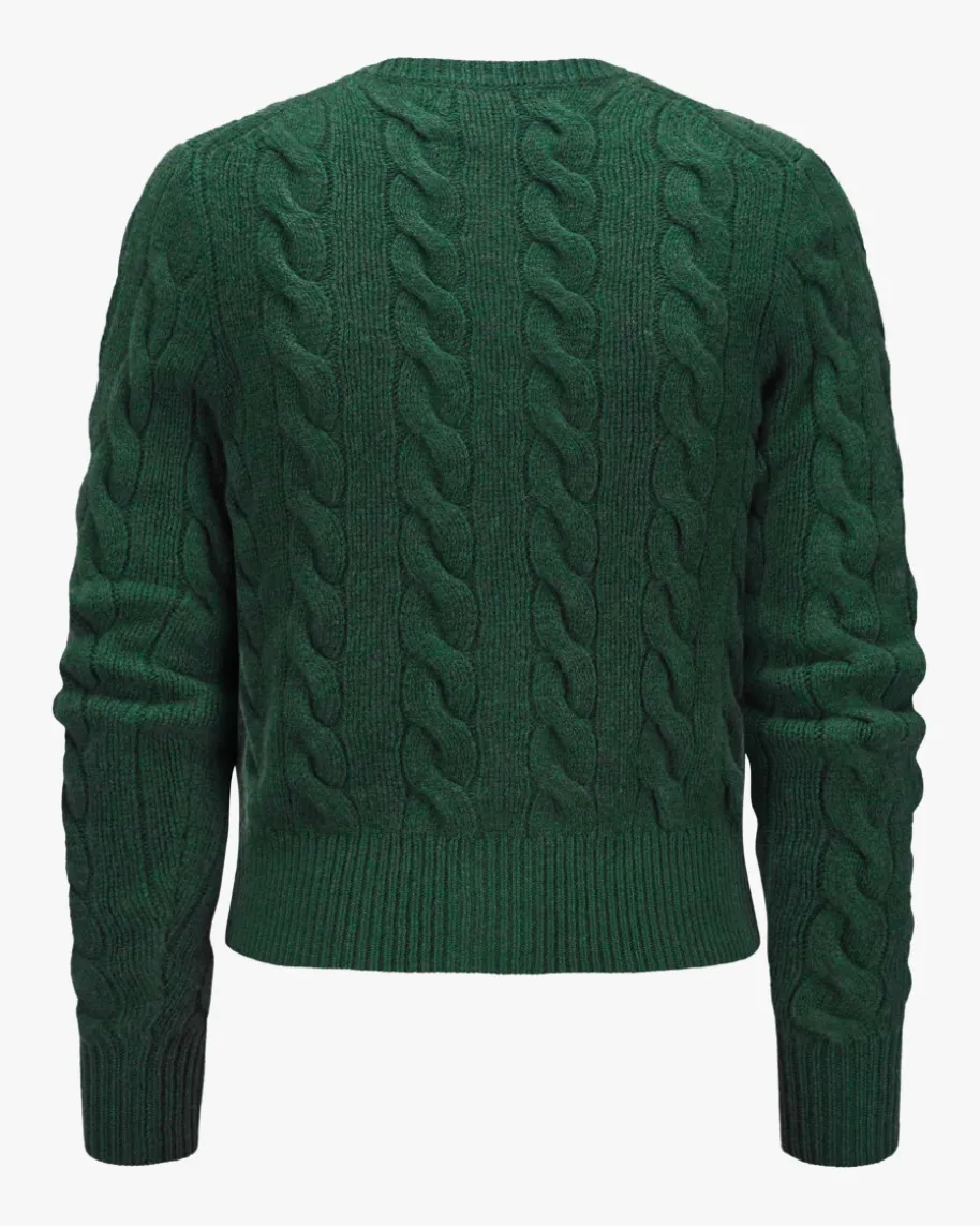 Strickjacke für Damen von Polo Ralph Lauren in Flaschengrün. Qualität,Lifestyle,Authentizität und zeitlose Eleganz – all das zeichnet die Marke Polo RalphLauren seit nunmehr 50 Jahren Firmengeschichte aus. Das Modell begeistert durchden besonders weichen Wolle-Cashmere-Mix mit hohem Tragekomfort. Stilvollabgerundet wird das Design durch die kontrastierende Logo-Stickerei auf derBrust sowie das klassische Zopf-Strickmuster.