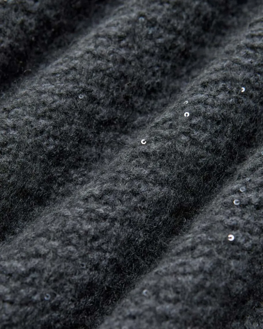 Strickjacke für Damen von Fabiana Filippi in Anthrazit. Das legere, langgeschnittene Modell präsentiert sich in dickem Gitterstrick-Design aus weichemMerinowoll-Seiden-Mix, während die zarten Pailletten-Applikationen einenfemininen Touch verleihen.