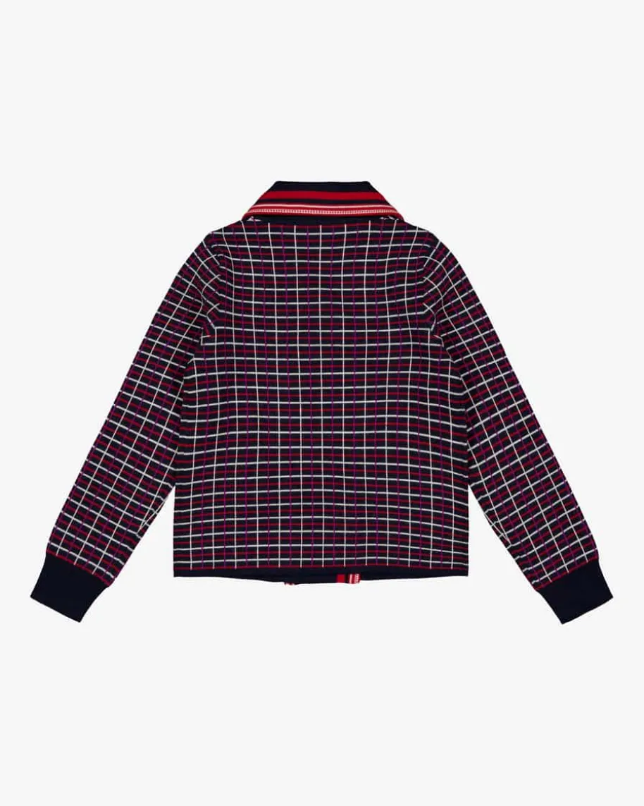 Strickjacke für Mädchen von Gucci Kids in Rot, Weiß und Navy. Das Modell instilvoller Blazer-Optik verspricht dank dem feinen Woll-Mix ein angenehmesTragegefühl, während das raffinierte Allover-Dessin sowie die Logo-Stickerei amRevers das Gesamtbild niedlich vollenden.