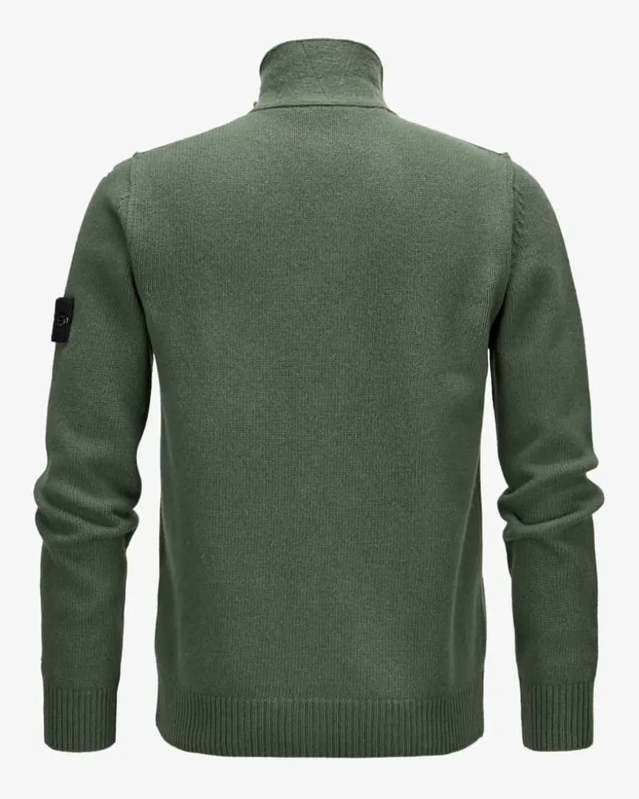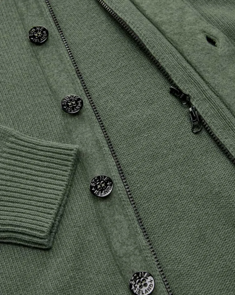 Strickjacke für Herren von Stone Island in Oliv. Während das klassische Strick-Design mit hohem Stehkragen und Filz-Besatz zusammen mit dem doppeltenVerschluss einen maskulinen Look kreiert, rundet die labeltypische Logo-Plaketteam Ärmel das Gesamtbild gekonnt ab.