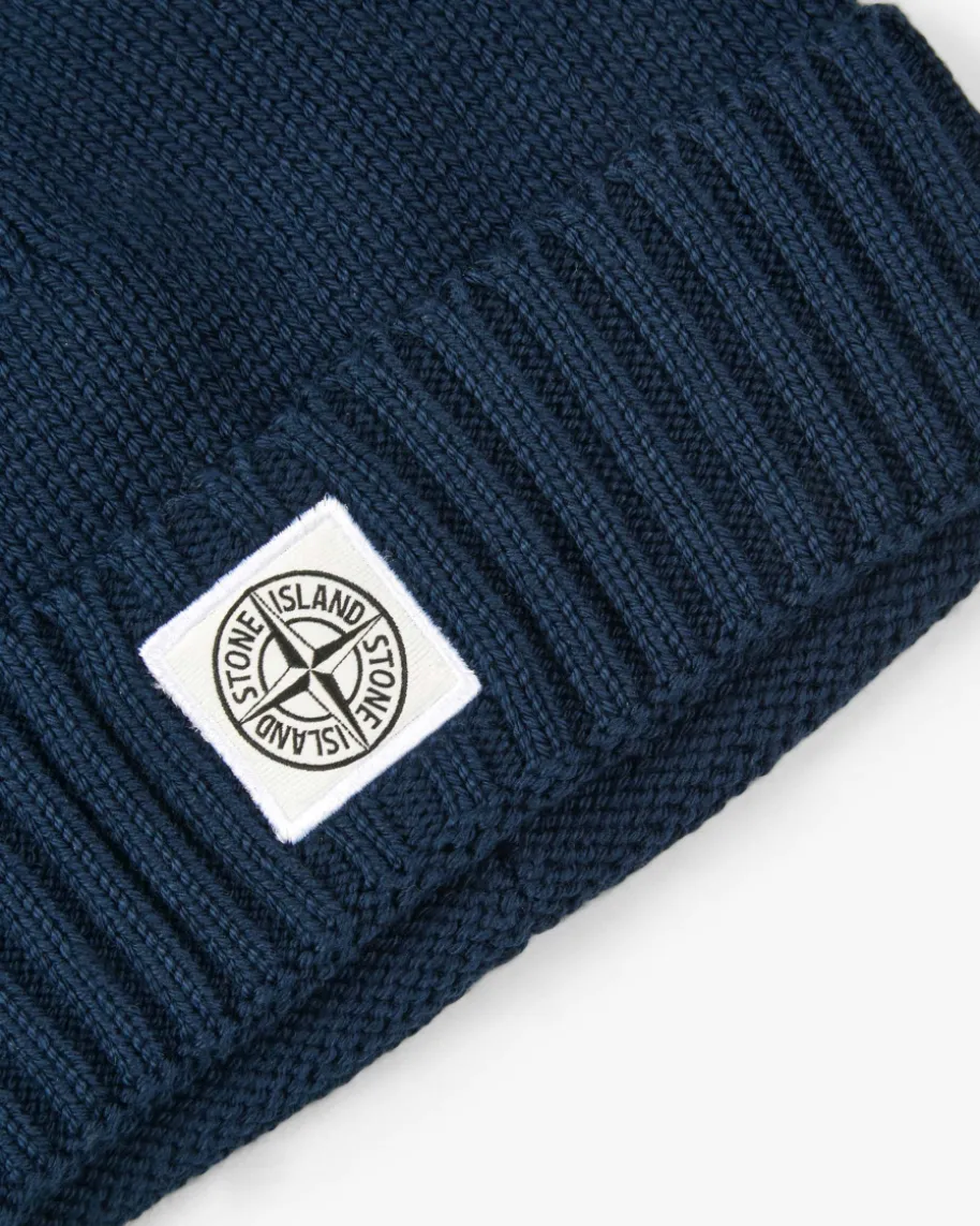 Strickmütze für Jungen von Stone Island Junior in Navy. Das Modell ausangenehmem Baumwoll-Mix avanciert durch sein klassisches Rippstrick-Design zumidealen Begleiter an kühlen Tagen. Der labeltypische Logo-Aufnäher rundet dasAccessoire charakteristisch ab.